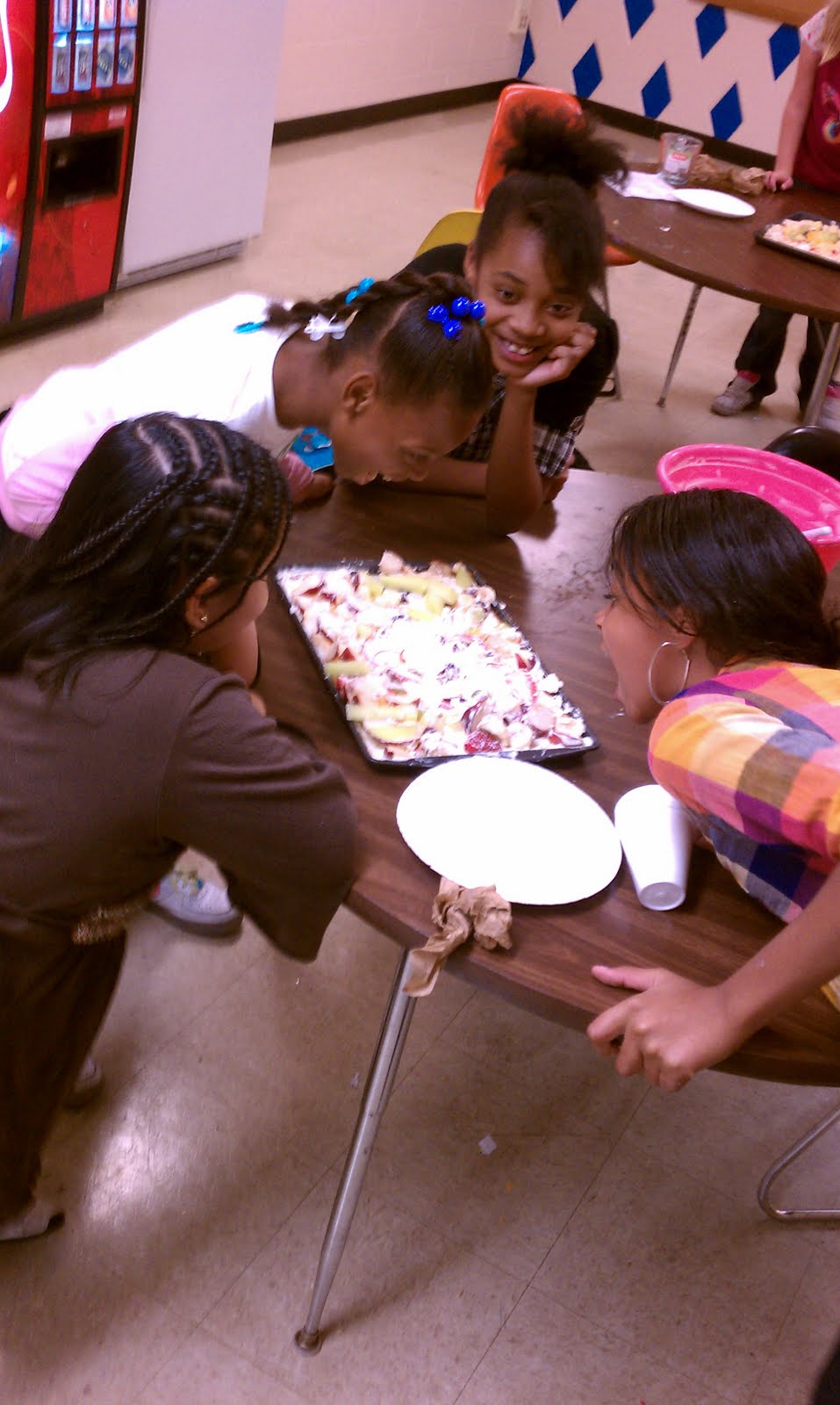One of our 3-5th grade groups is called Sheridan Chefs. They learn to work together to create delicious foods! Today they made fruit pizzas!